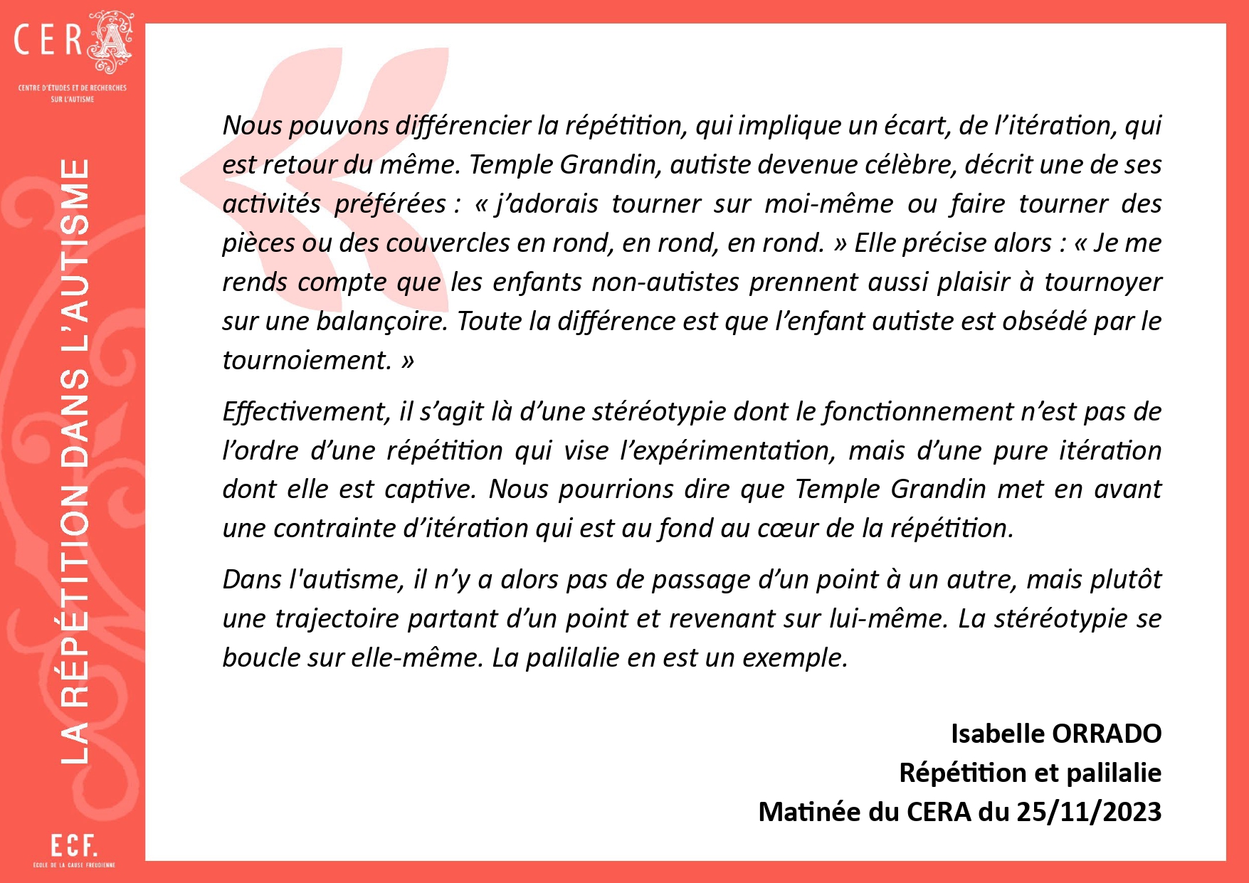 À lire aussi sur le site de la cause de l’autisme : « De l’ABA à l’Affinity Therapy », co-écrit avec Michel Grollier.