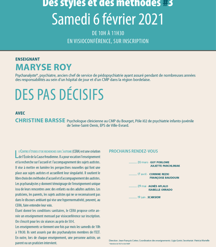 L’enseignement 2021 du CERA se poursuit avec la deuxième matinée en visioconférence, samedi 6 février…