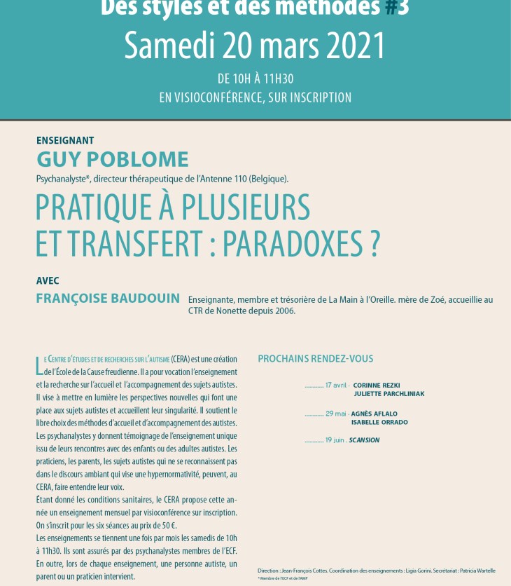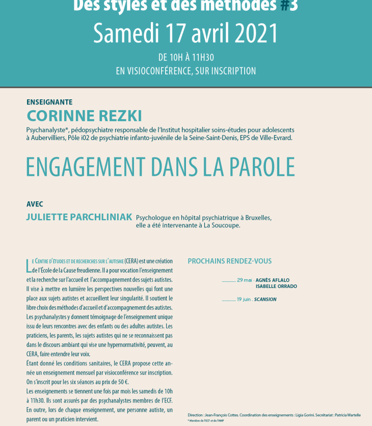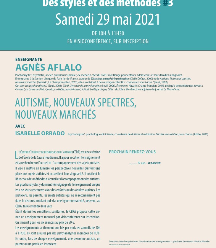 Ce cinquième rendez-vous du CERA permettra d’entendre Agnès Aflalo, psychanalyste membre de l’ECF et de…