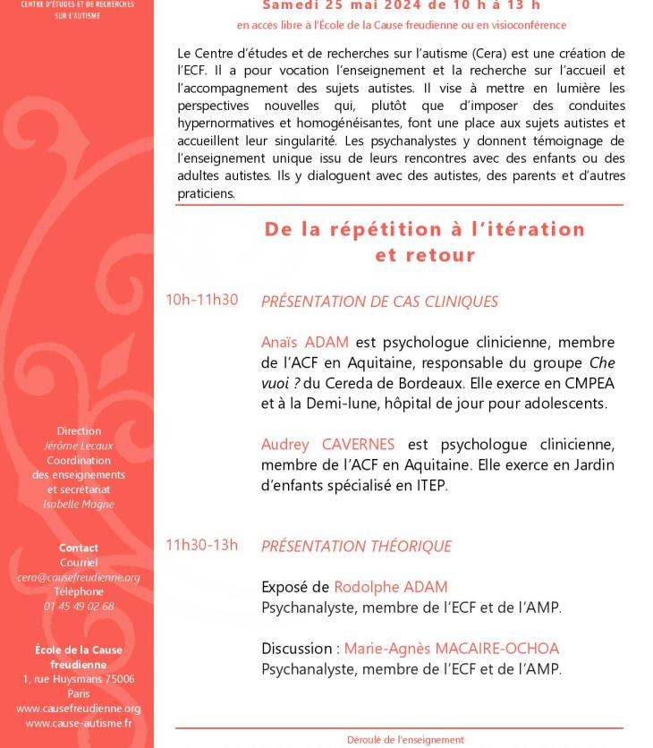 10h-11h30 PRÉSENTATION DE CAS CLINIQUES Anaïs ADAM est psychologue clinicienne membre de l’ACF en Aquitaine,…