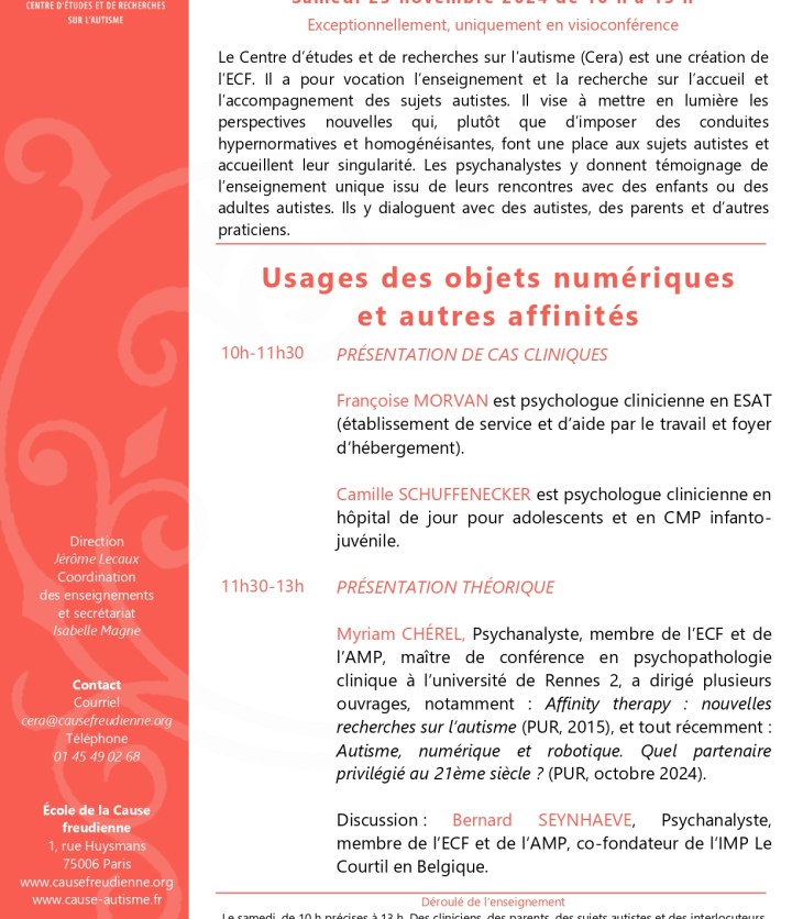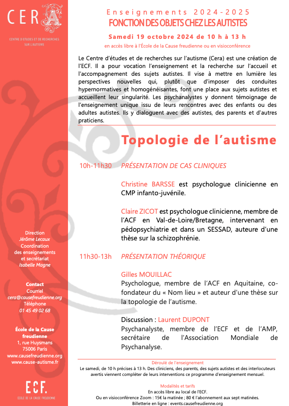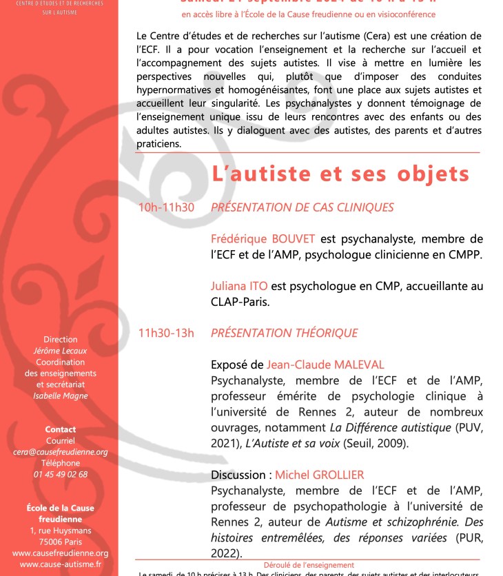 10h-11h30 PRÉSENTATION DE CAS CLINIQUES Isabelle ORRADOPsychanalyste, membre de l’ECF et de l’AMP, chargée de…