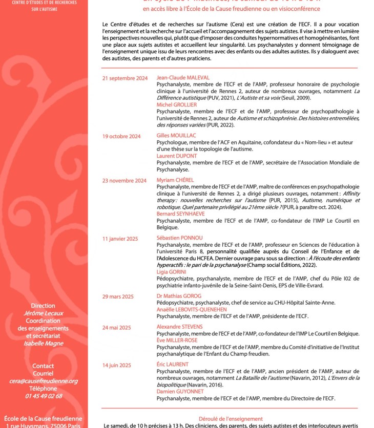 un cycle de 7 matinées, le samedi de 10 h à 13 hen accès libre…