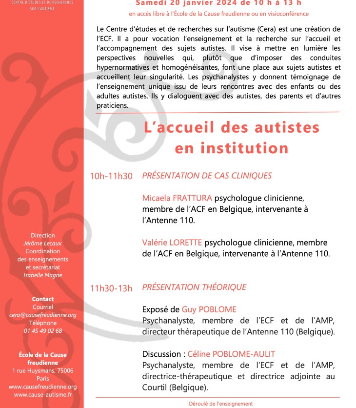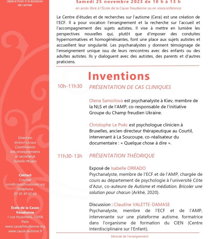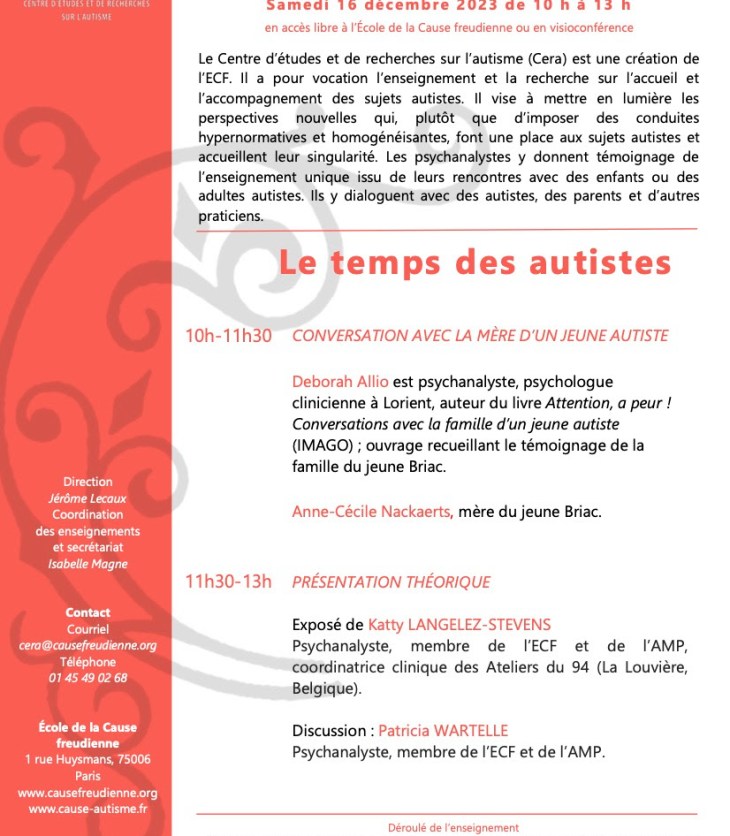 Le Centre d’études et de recherches sur l’autisme (Cera) est une création de l’ECF. Il…